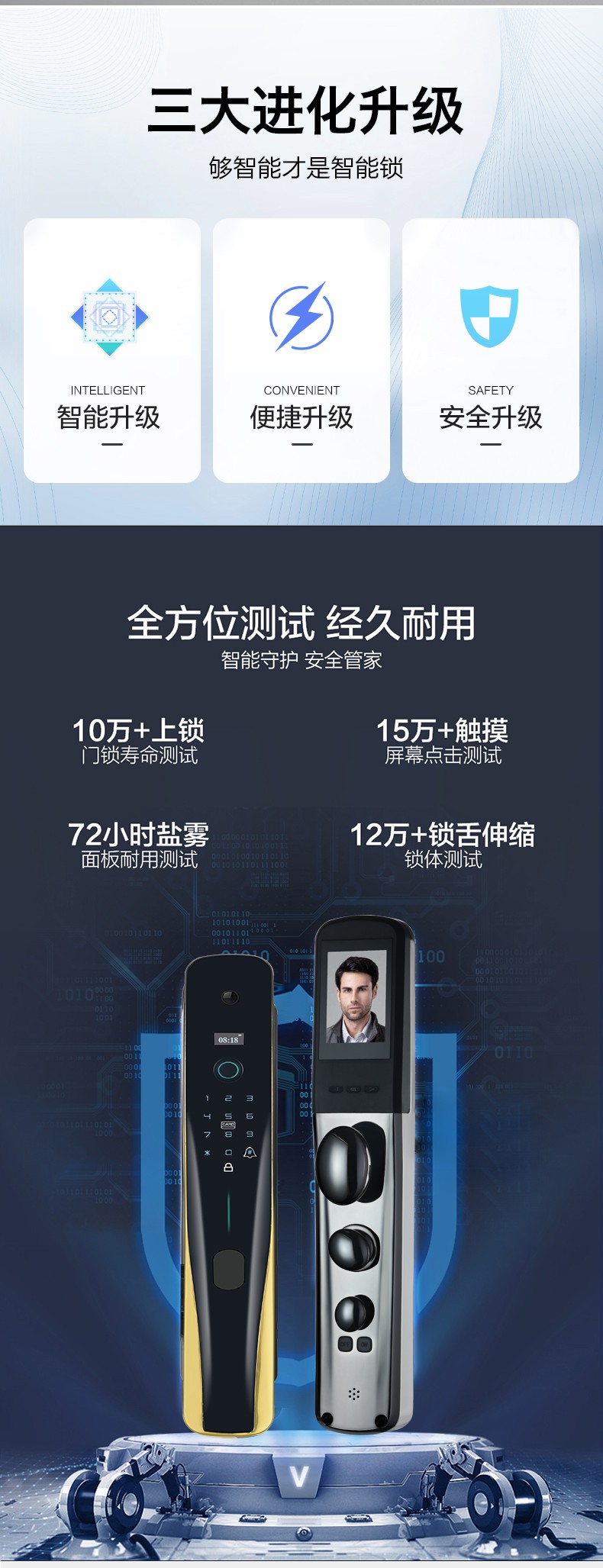 名将一号全自动指纹锁家用防盗门摄像头智能锁密码锁