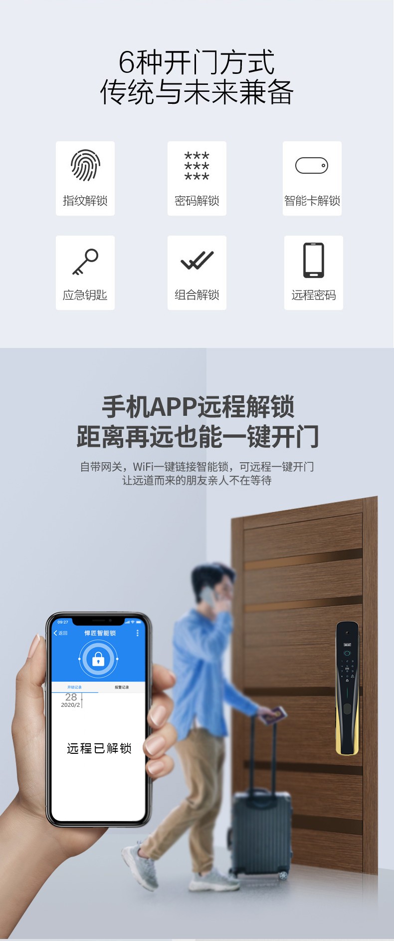 悍将智能锁指纹远程开锁