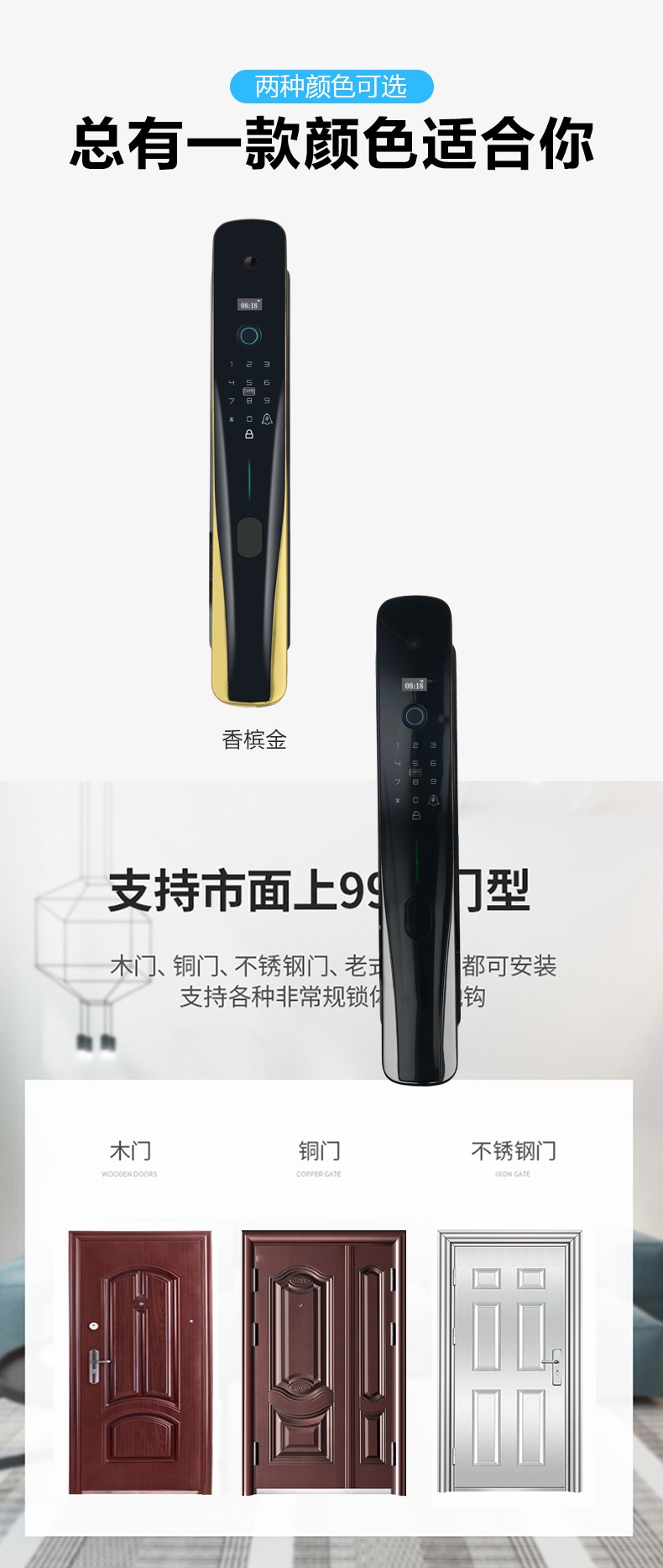 巧匠一号智能指纹密码锁家用防盗门带监控摄像头电子门锁